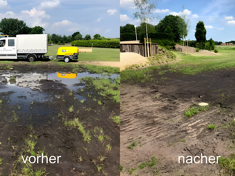 Verdichtete Böden, Staunässe und eingeschränkte Durchlüftung beeinträchtigen die Vitalität von Bäumen, Grünanlagen und Reitplätzen nachhaltig. Die Folgen sind geschwächte Wurzelsysteme, vermindertes Wachstum und erhöhte Anfälligkeit für Trockenstress oder Nässeschäden.