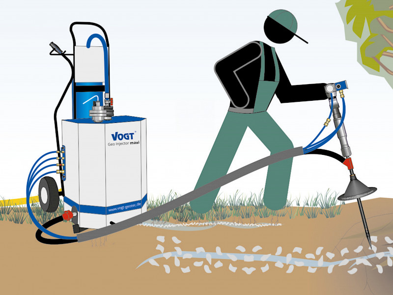 Mit dem Vogt Geo Injector Maxi bieten wir Ihnen eine professionelle und nachhaltige Lösung zur gezielten Bodenlockerung und Tiefenbelüftung. Durch moderne Injektionstechnik wird der Boden schonend bis in tiefere Schichten gelockert, ohne großflächige Erdarbeiten oder Beschädigungen an der Oberfläche.