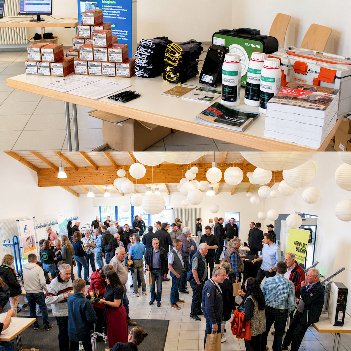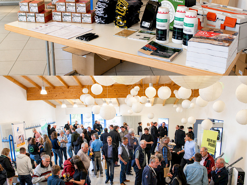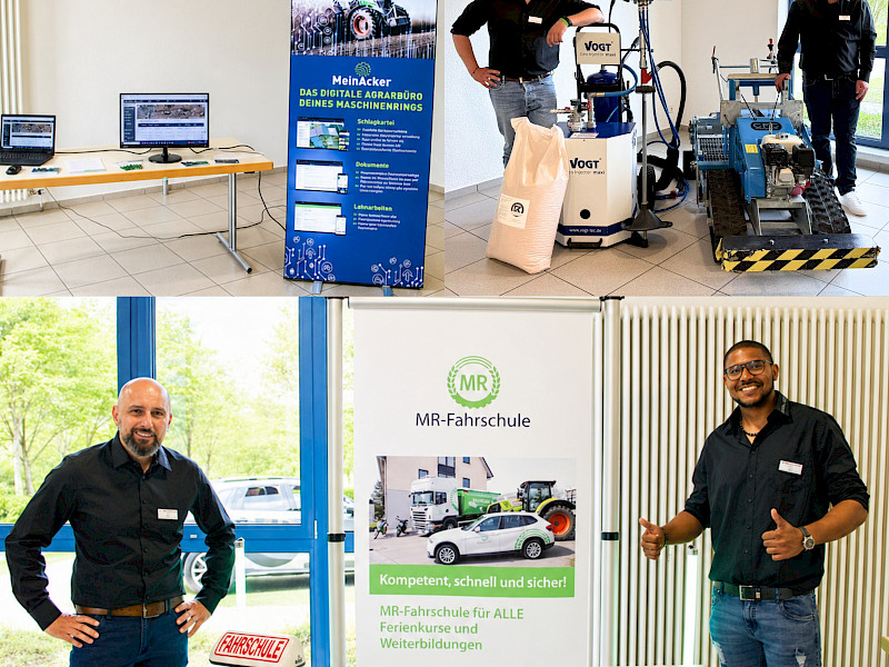 Ab 18 Uhr starteten wir mit unserer Hausmesse. In diesem Jahr lag der Schwerpunkt bewusst auf unseren eigenen Dienstleistungen und Angeboten. Ergänzt wurde das Programm durch externe Partner: Herr Penke von der Maschinenring Deutschland GmbH informierten über die Einkaufsvorteile, welche man als Maschinenringmitglied bekommt, während Herr Heckenberger von der Firma mahelio das Thema Agri-PV anschaulich vorstellte.